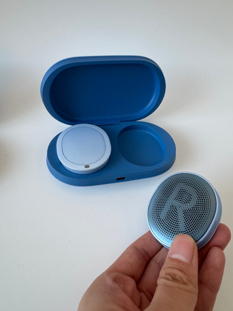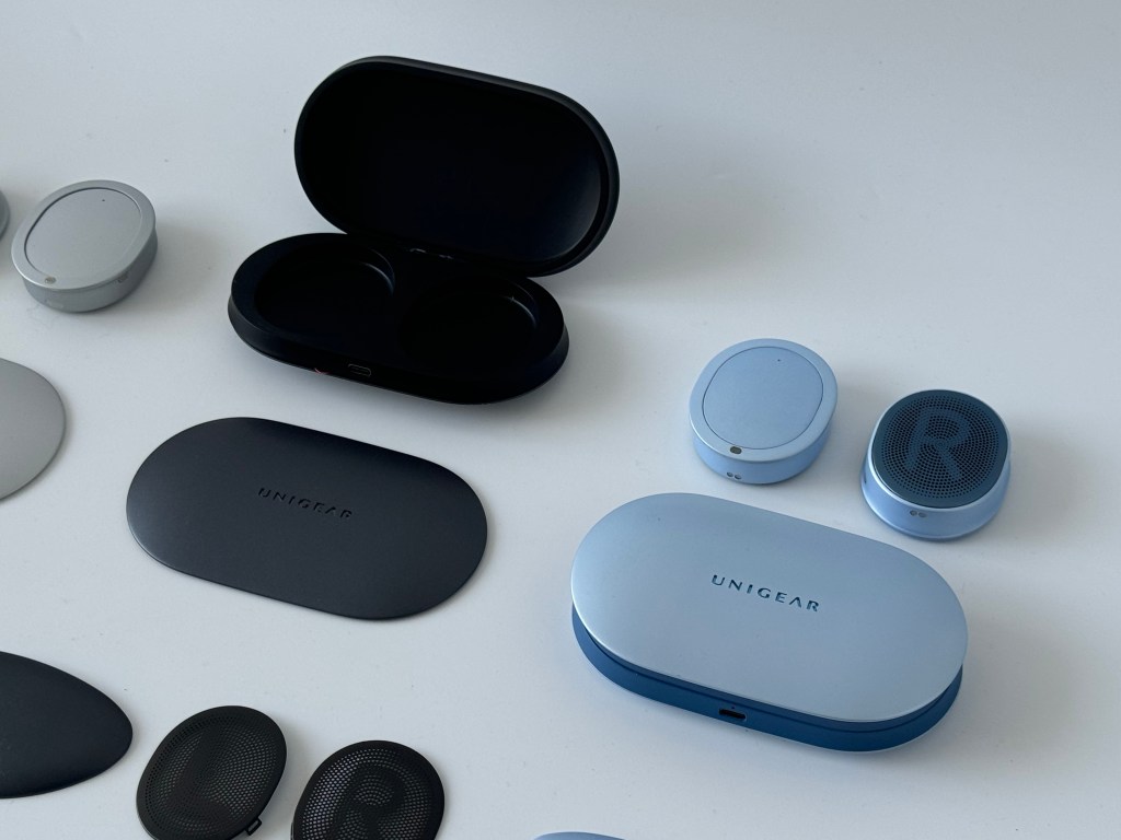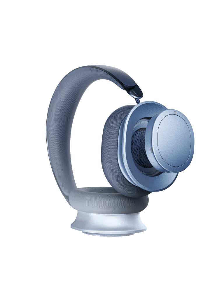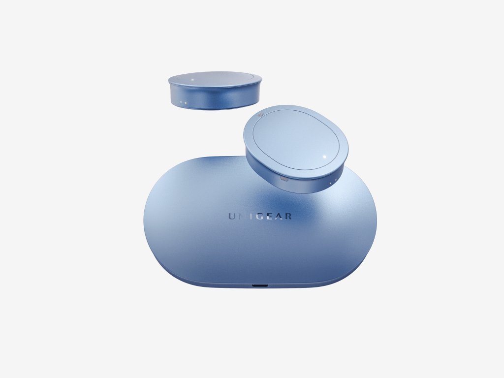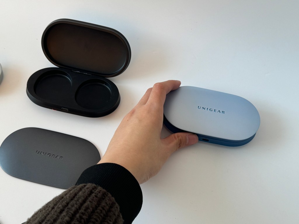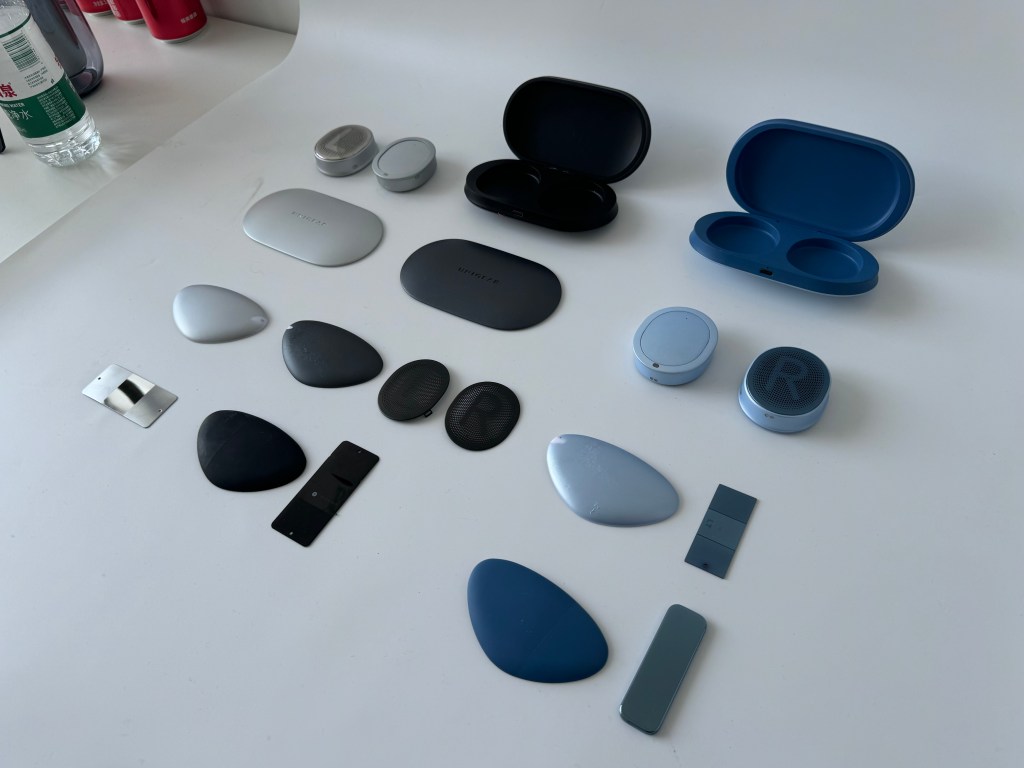 延续旅行头戴式耳机的设计语言,充电仓及模组延续了凹陷纤薄的设计语言,简洁而高级;模组蚀刻出音孔渐变保证美观及功能性的同时,简化工艺及降低成本。